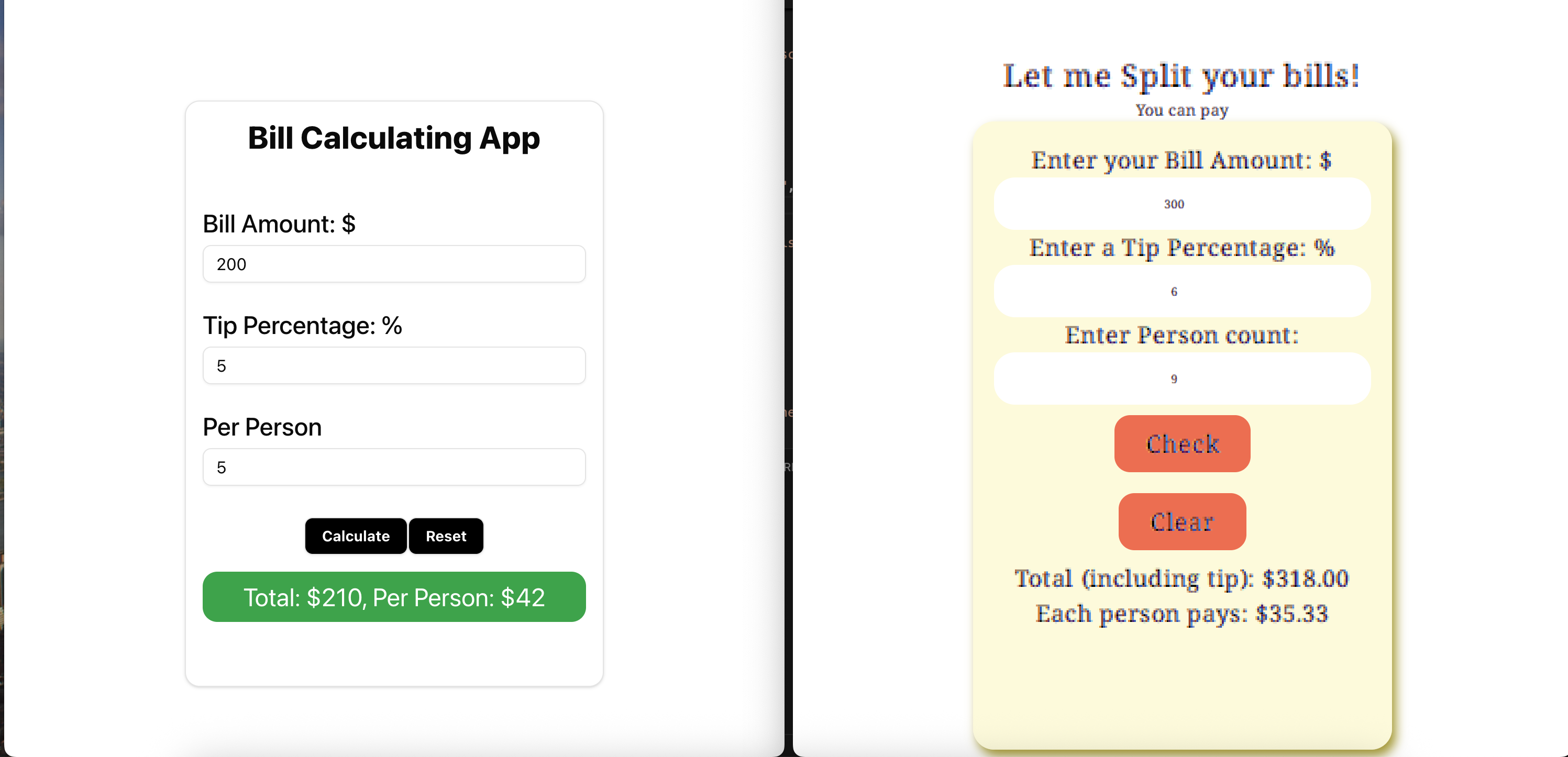 A modern, simple app for group outings and bill splitting. It allows users to split bills in just a few seconds. Built using Next.js and Shadcn UI for the frontend, and Python Flask (with some Postman testing) for the backend. Also features the same app in JavaScript