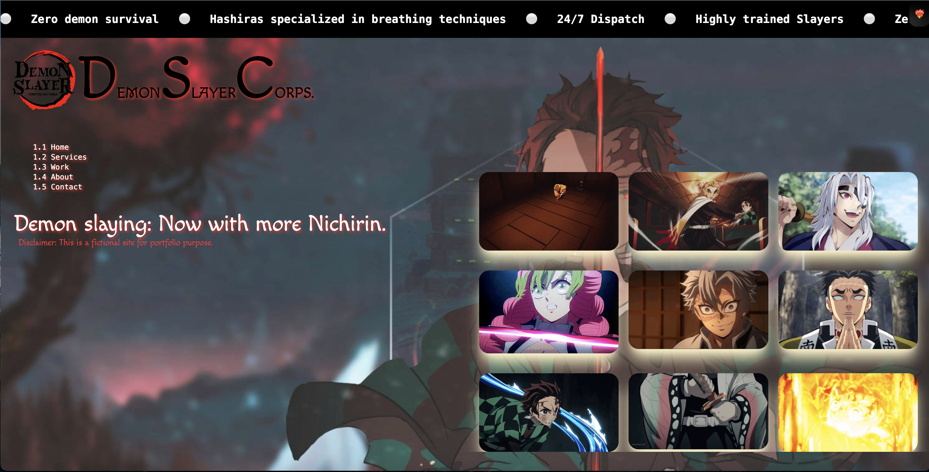 This project is a mock website inspired by the popular Demon Slayer anime, built using React and styled with Tailwind CSS.
